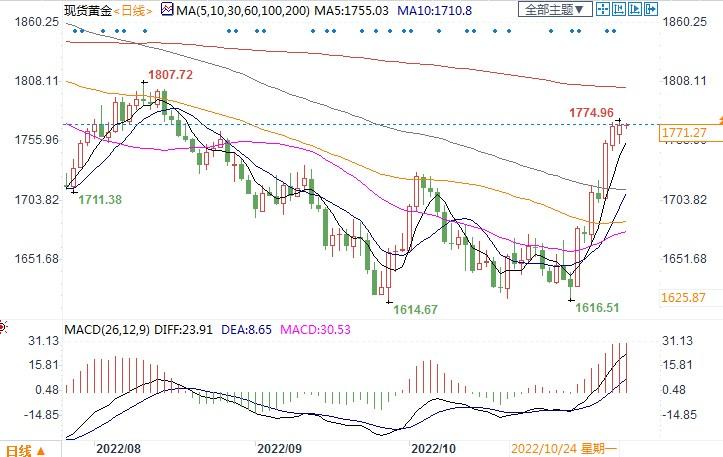 北京时间11月15日11:13,现货黄金报1771.27美元/盎司