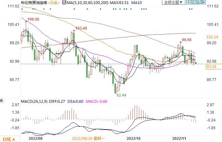 北京时间11月16日14:04,布伦特原油连续报92.31美元/桶