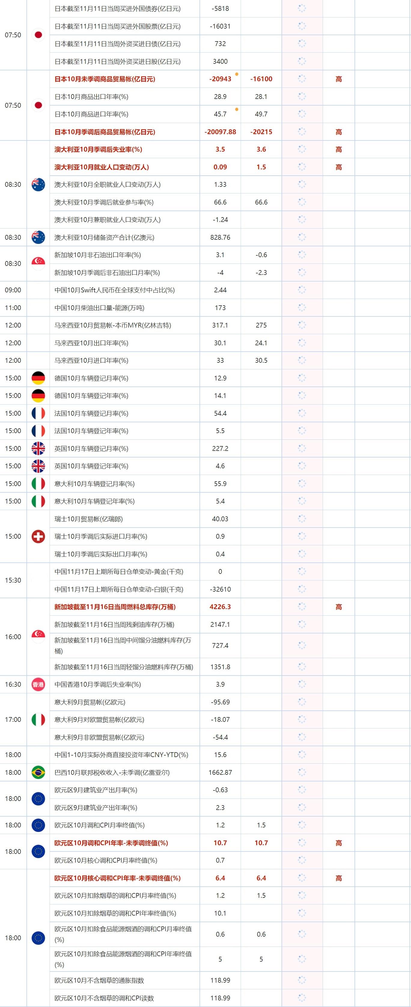 后续及时更新的财历数据请关注:【汇通网11月17日财经日历】