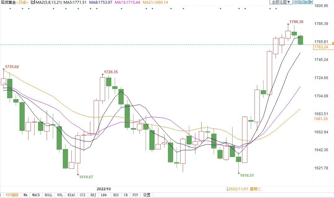 北京时间11月17日13:56,现货黄金报1763.26美元/盎司