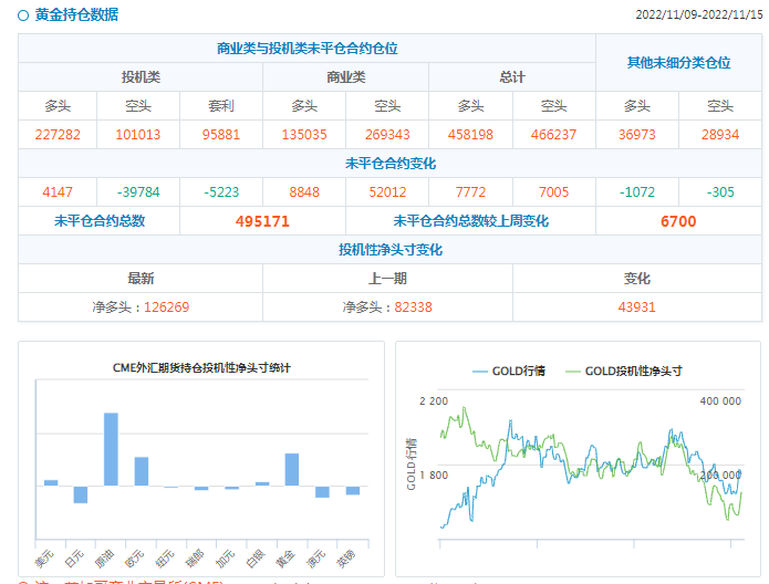 贵金属方面,美国商品期货交易委员会(CFTC):11月15日当周,投机者转而持有COMEX黄金净多头头寸40726手合约,之前一周持有净空头头寸8219手合约。