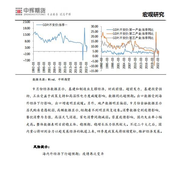 中辉期货9月份宏观数据解读,称9月份经济弱势复苏,四季度政策全力以赴发展经济。