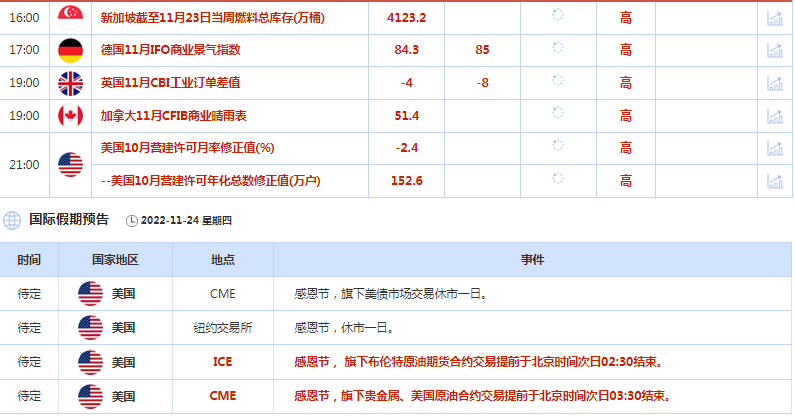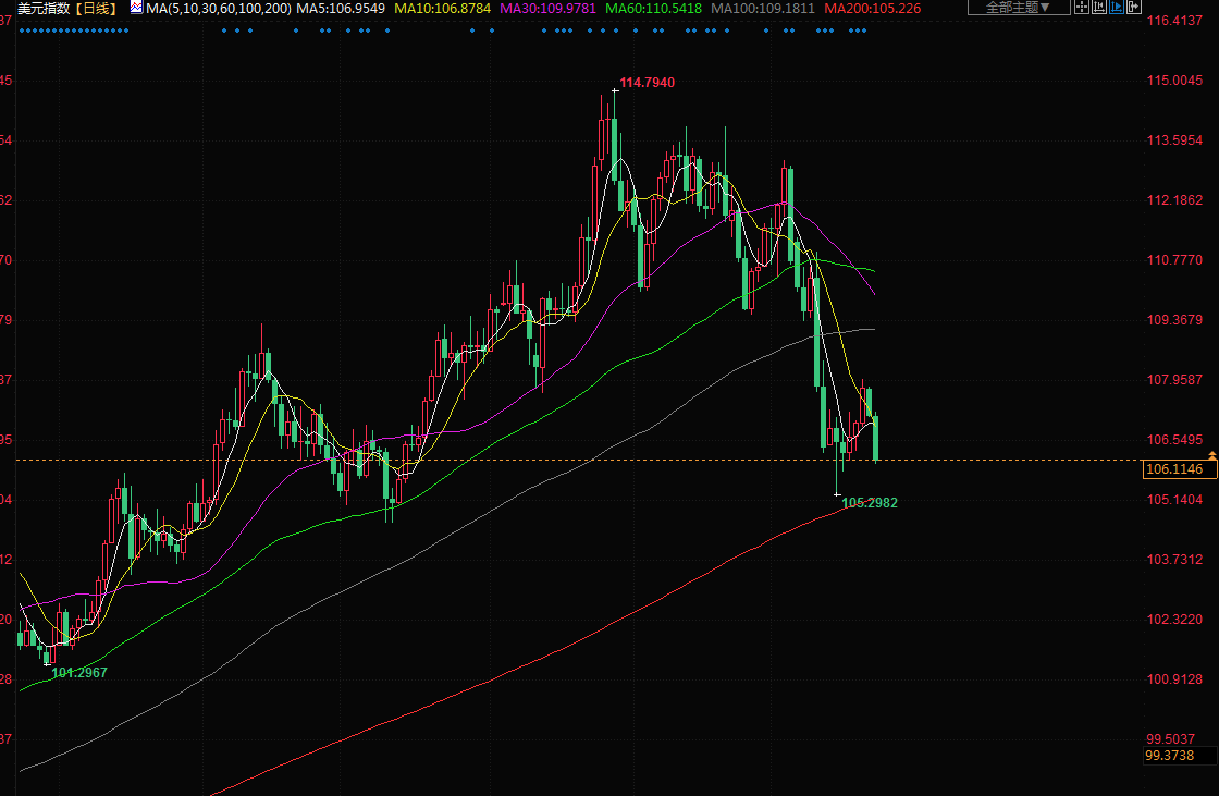 北京时间周四(11月24日)亚市早盘,美元指数交投于106.11附近;美元周三全线下跌,此前美联储公布的11月会议记录显示,联储大多数决策者同意很快就应该放缓加息步伐;金价延续涨势,油价周三下跌超过4%,因七国集团(G7)考虑对俄罗斯石油设定高于当前市场水平的价格上限,以及美国汽油库存增幅超出了分析师的预期。