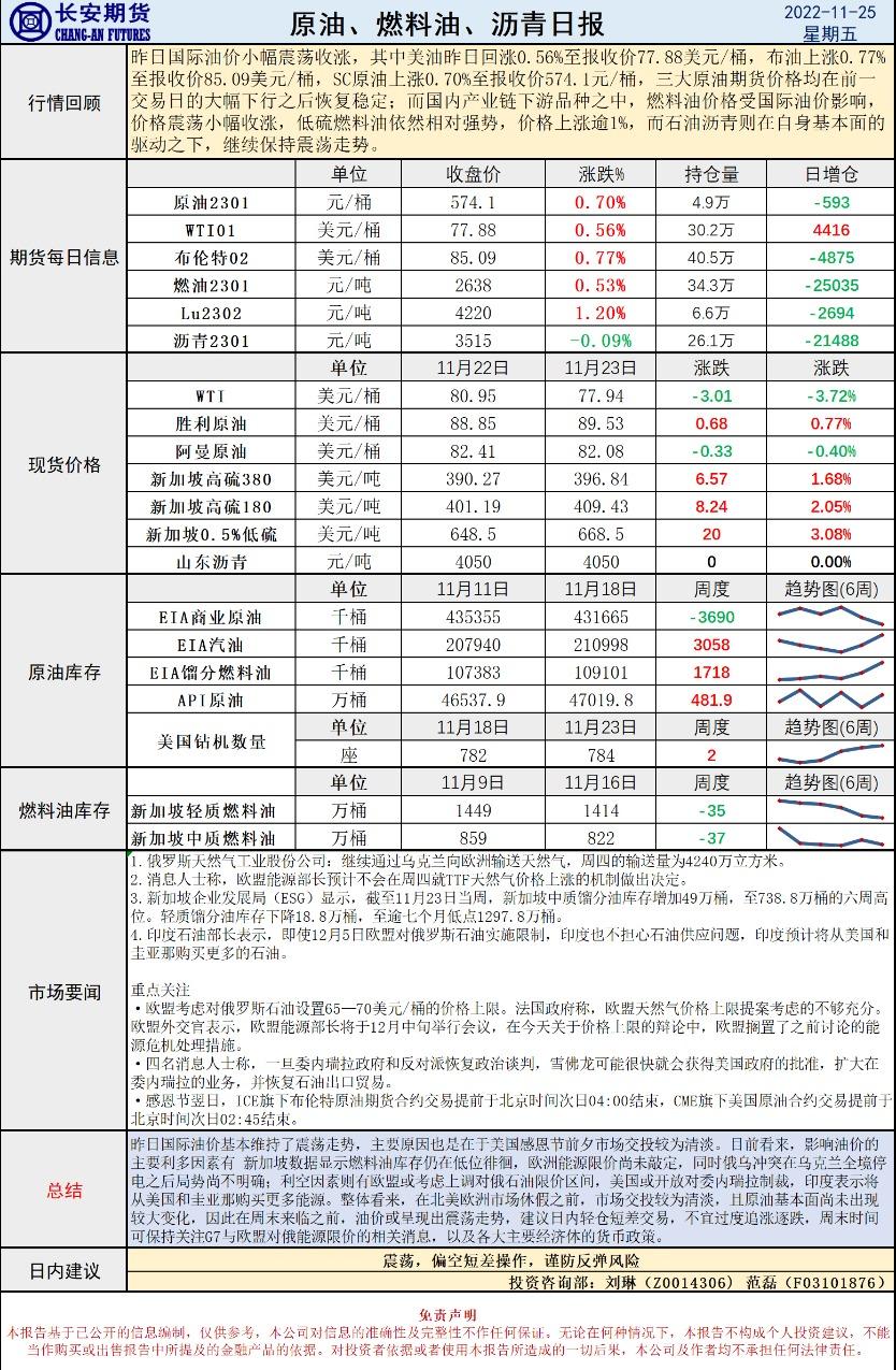 11月25日,长安期货发布原油早评,认为原油将震荡,偏空短差操作,谨慎反弹风险。