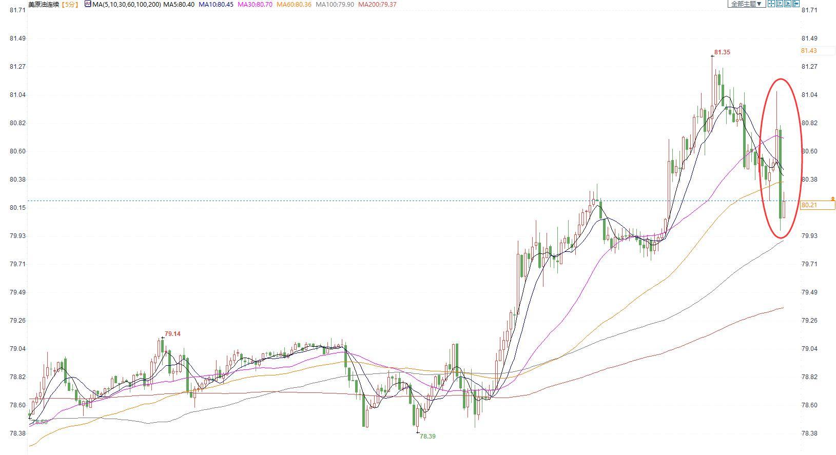 美国原油价格5分钟图显示