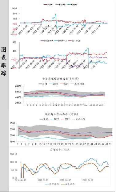 供应端:据美国能源信息署最新数据显示,截止2022年11月18日当周,包括战略储备在内的美国原油库存总量8.22183亿桶,比前一周下降529.1万桶;美国商业原油库存4.31665亿桶,比前一周下降369万桶;战略原油库存量3.90518亿桶,比上一周下降160.1万桶;美国汽油库存总量2.10998亿桶,比前一周上升305.8万桶。商业原油库存比去年同期低0.54%,比过去五年同期低5.21%;汽油库存比去年同期低0.19%,比过去五年同期低约3.79%;馏分油库存比去年同期低10.37%,比过去五年同期低13.09%。