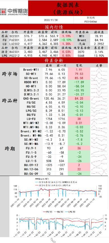 走势研判: 随着12月4日OPEC+新一轮会议临近,以及12月5日欧盟对俄罗斯原油禁运,G7对俄罗斯原油限价,在靴子落地之前,价格预计以震荡或技术修复小幅回升为主。