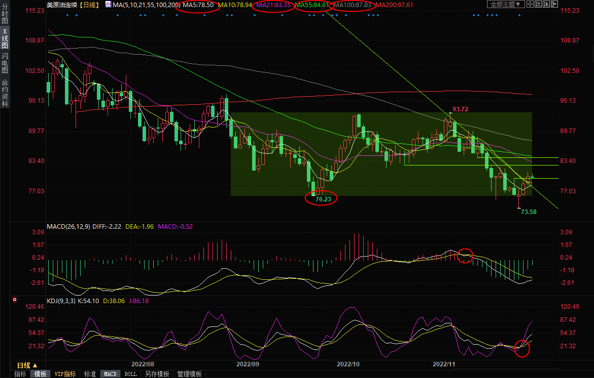 下方初步支撑在上周五高点79.88附近,5日均线支撑在78.52附近,周三低点支撑也在该位置附近,由于MACD死叉信号仍在,若油价意外回落至该位置下方,则削弱短线看涨信号。