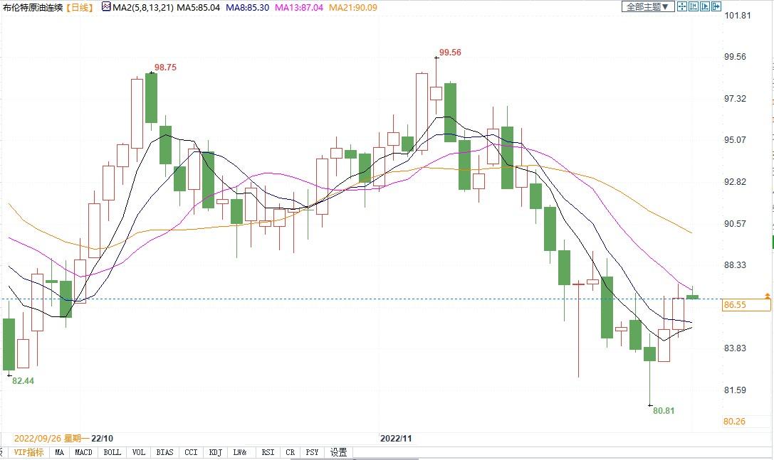 北京时间12月1日14:14,布伦特原油主力合约价格报86.52美元/桶。