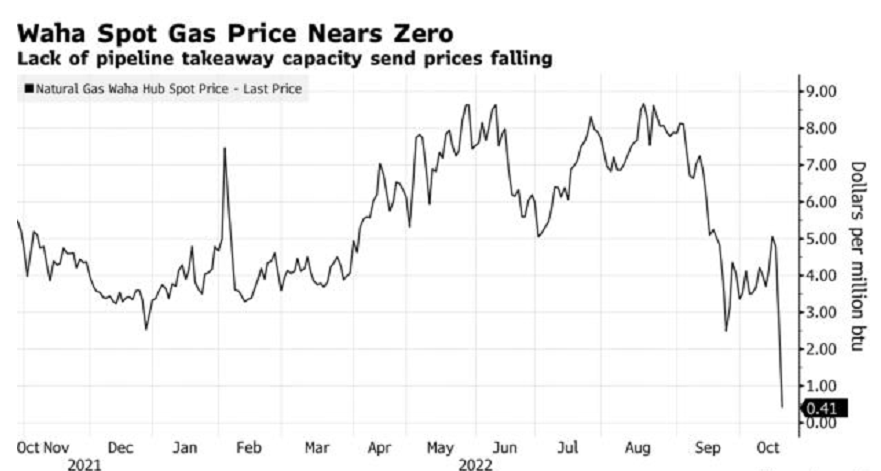 美国二叠纪盆地Waha枢纽的天然气价格跌至每百万英热单位负2美元左右。德克萨斯州价格最近的暴跌源于北美最大的能源基础设施公司金德摩根公司(Kinder Morgan)对其在墨西哥湾的两条重要输气管道进行的维修和养护计划。