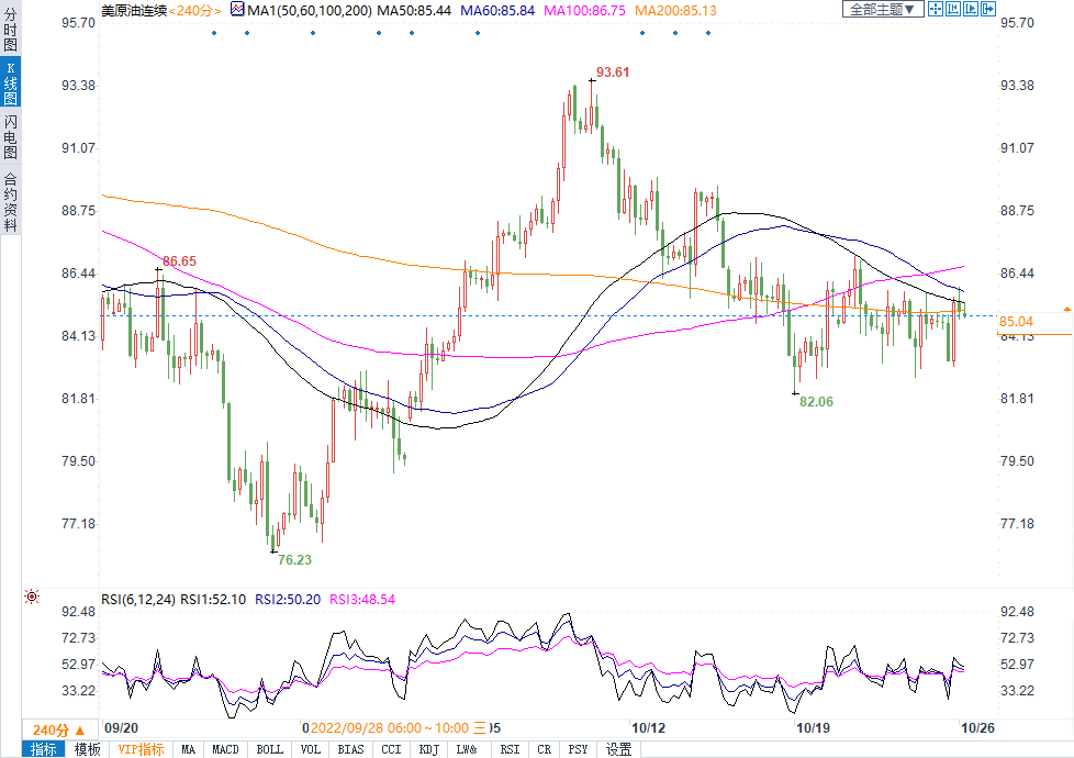 API数据显示,截至10月21日当周,精炼油库存增加63.5万桶,汽油库存减少227.8万桶。Price Futures Group高级市场分析师Phil Flynn表示,因为对供应紧张的担忧再次成为市场的首要考虑,油价今天从早些时候的下跌中反弹。我们仍处于淡季,依旧受到对全球经济和利率担忧的影响,目前虽然石油市场试图忽视美元,但它做不到。不过随着进入冬季,我们将看到美元和石油关系之间的脱节,因为届时石油将被需要。