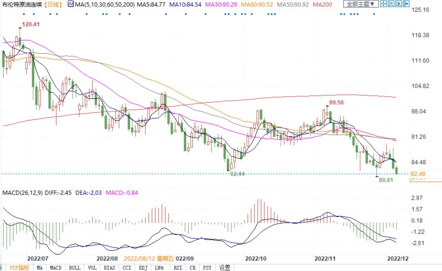 北京时间12月6日22:02,布伦特原油主力合约价格报81.36美元/桶。