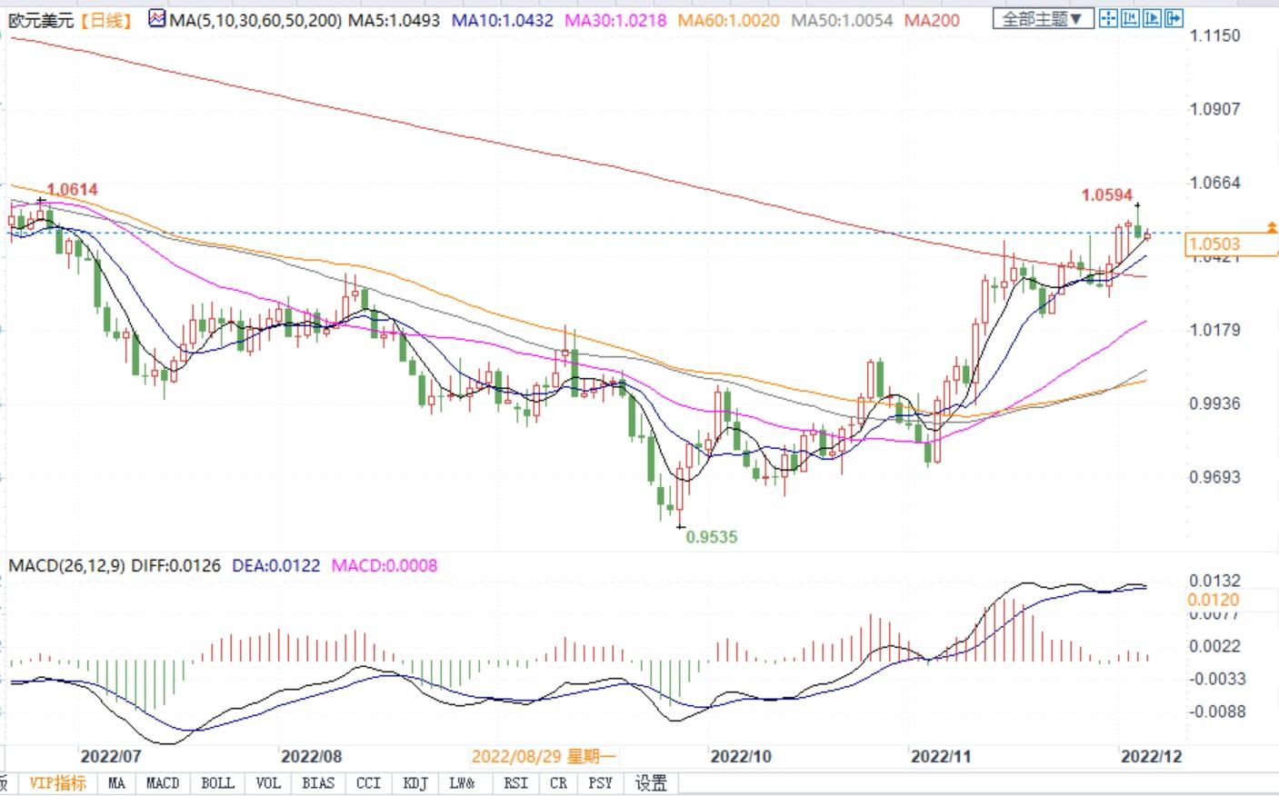 欧洲央行会议将在12月15日召开,届时预计将加息50个基点。此外,欧元区还将发布新的增长和通胀预测,也将影响欧元兑美元走势。
