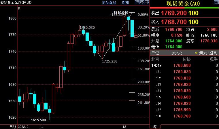 汇通财经APP讯——周二(12月6日),国际金价冲高回落,有望延续隔夜逾1.6%的跌势,受美元反弹带来的压力。需求强于预期的任何迹象,可能导致市场重新审视美联储政策预期。金价后市下看1758美元。