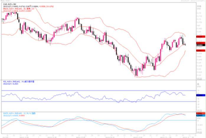 澳洲联储周二公布最新利率决议,加息25个基点至3.10%,符合市场预期,为今年5月以来第八次加息,且为2012年11月以来最高利率水平。但对于澳元并未起到太大的抬捧作用,澳元对美元仍微跌0.15%,收盘于0.6688水平。因为此前由于澳大利亚10月CPI下降至6.9%,低于预期和前值,暗示通胀可能达到峰值,加之亚洲疫情限制逐渐放开,该央行也被认为正逐渐接近本轮加息周期的终端利率,且可能正在认真考虑暂停加息。澳元近期大幅下挫,一度失守0.6700关口并刷新3个交易日低位,现汇价交投于0.6670附近。除获利回吐对汇价构成了一定的打压外,美元指数在多重利好因素的支撑下止跌反弹是施压澳元走软的主要原因。此外,市场的避险情绪重燃,大宗商品原油,国际铜等价格下滑也对商品货币澳元构成了一定的打压。日线图上,澳元兑美元在0.68水平出阻力较重,各类技术指标自超买处出现拐头下行态势,近期还是要防范澳元兑美元进行技术上的回撤调整风险,下方留意初步支撑0.6640水平,跌穿后进一步的关键支撑在0.65附近。
