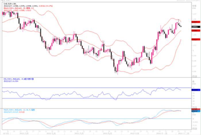 周二(12月6日),日内欧元对美元继续微跌0.26%,收盘于1.0464。欧盟统计局最新公布的数据显示,欧元区的通胀水平在11月份有所回落,数据显示欧元区11月HICP同比上涨10%,低于预期以及前值得10.6%,是一年来首次放缓。与此同时,欧元区10月生产者物价指数PPI同比与环比也有所下降,进一步增强了市场对于欧元区通胀水平有望见顶的预期。这引起了市场的疑虑,就是12月份欧央行还是否会大举加息。尽管欧元区通胀水平在11月出现了一定程度下降,但依然维持在两位数的高水平,与此同时近期欧央行众多管委们都发表鹰派言论,因此欧央行在12月份应不会停下加息的脚步。欧元近两个交易日的回落,更大程度上应属于冲高技术调整而已。日图20日均线仍向上,短线在1.0600一线受阻修正涨幅,略倾向进一步回调风险。4小时图继续在小幅回落寻找稳固的支撑水平,各类技术指标也是随之出现延续下行之态。目前日线图上20日均线水平1.0380附近的支撑较为关键,若跌穿则欧元重回跌势的风险增高。相反若在1.0380-1.0300区域能站牢,后市继续走高仍可期。