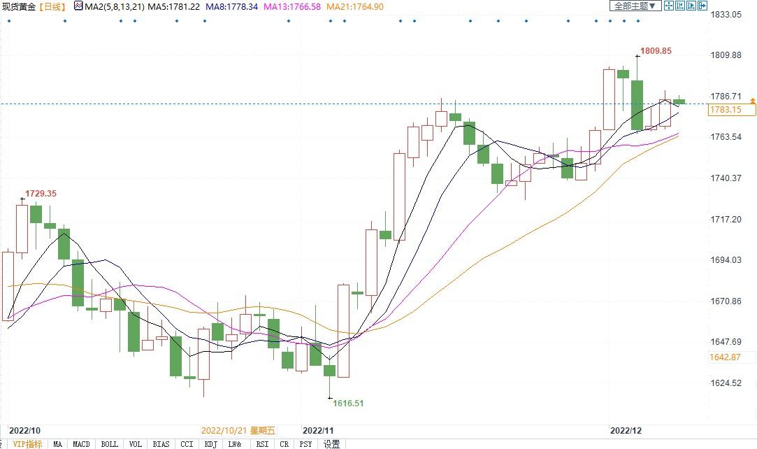 北京时间12月8日13:00,现货黄金报1783.45美元/盎司