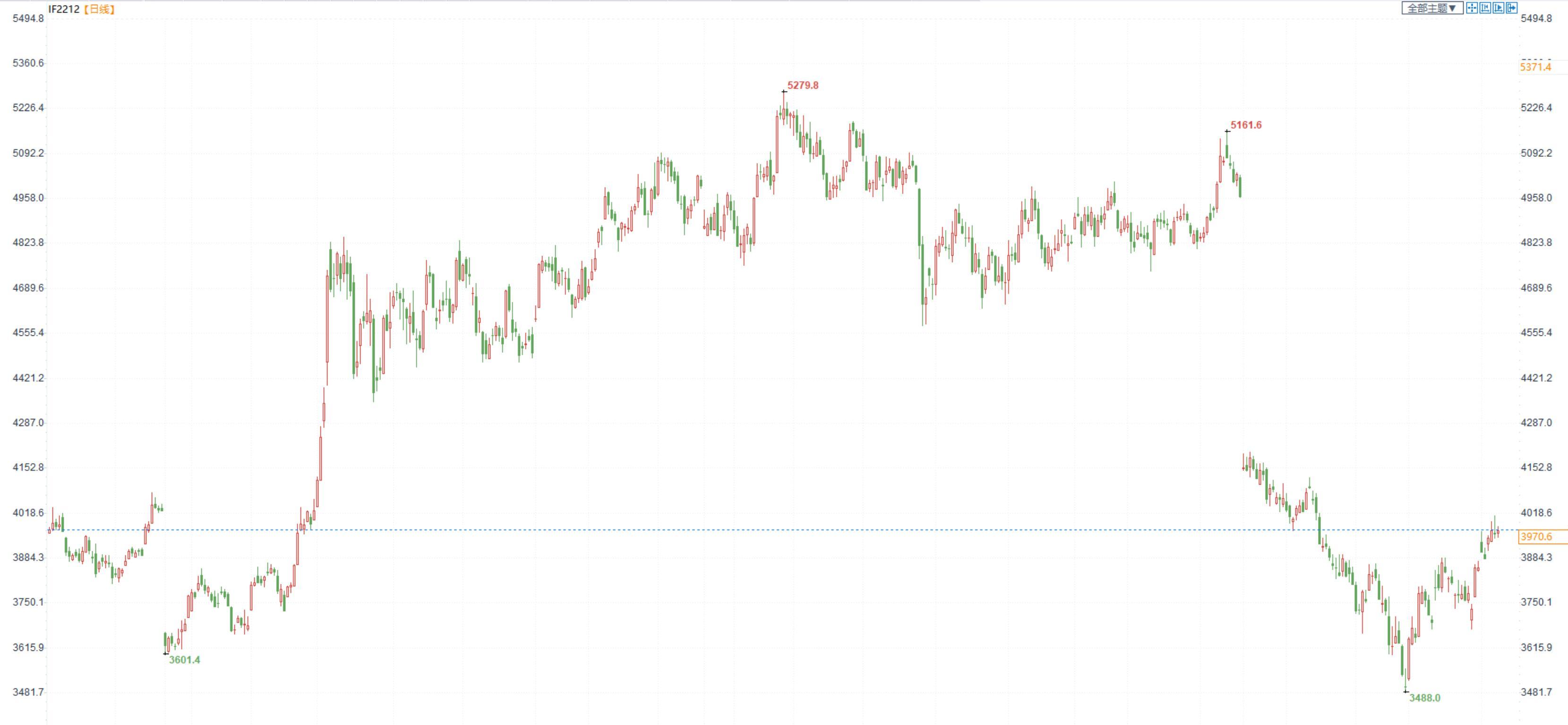 【今日涨跌】四大期指涨跌互现。IH2212收盘价为2677.6,收涨0.40%;IF2212收盘价为3970.6,收涨0.39%;IC2212收盘价为6192.2,收跌0.08%;IM2212收盘价为6663.8,收跌0.39%。