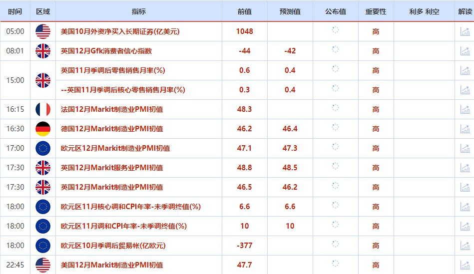 ⑤12月16日(周五)关键字:欧元区12月Markit制造业PMI初值,欧元区11月CPI