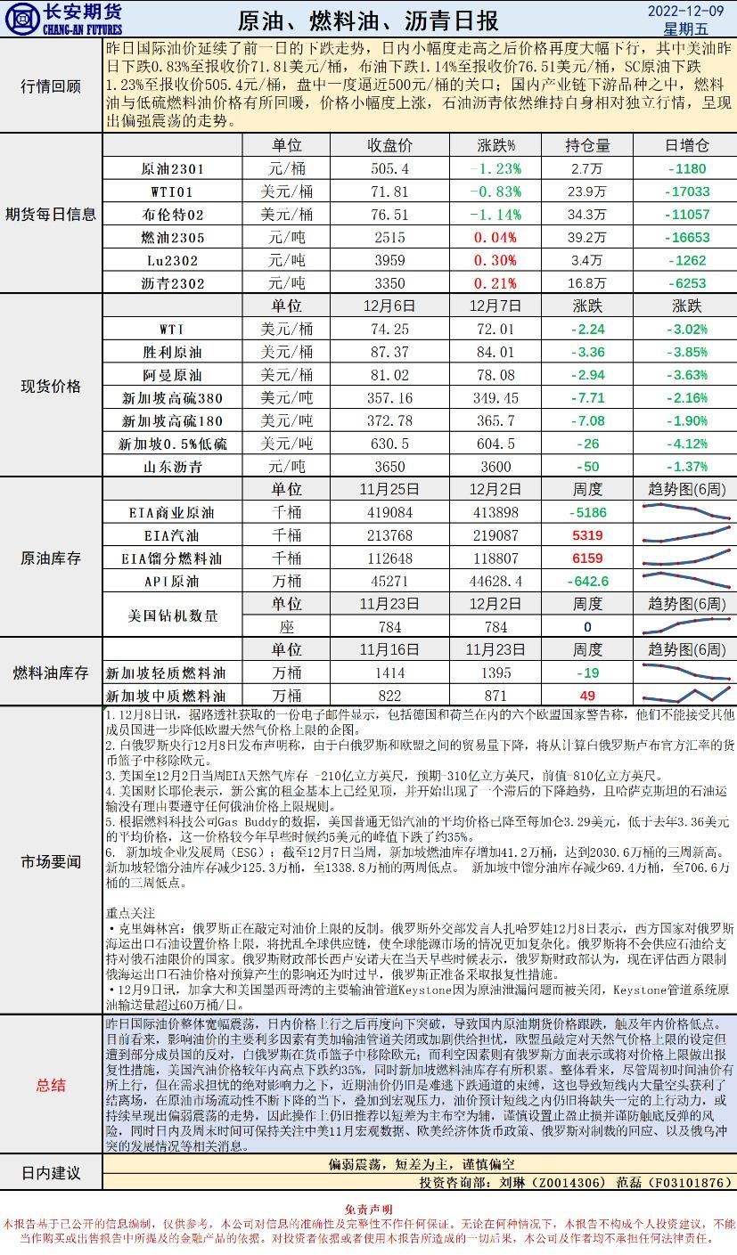 汇通财经APP讯——12月9日,长安期货发布原油早评,认为原油将偏弱震荡,短差为主,谨慎偏空。
