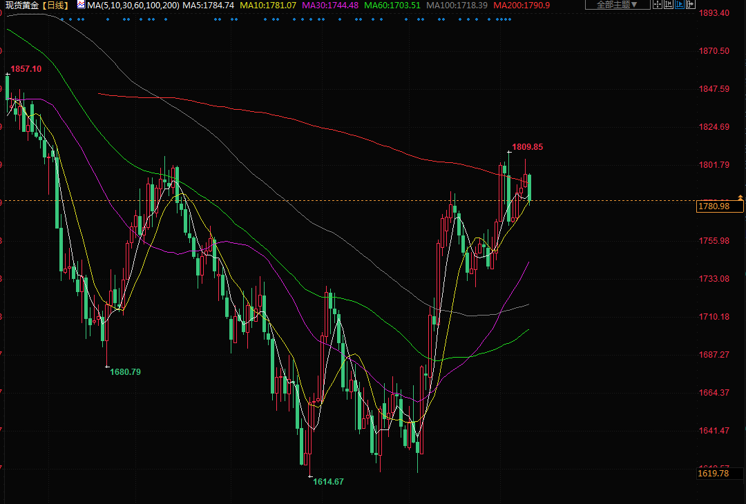 金价周一下跌,投资者在场外观望,等待美国通胀数据和美联储本周晚些时候的加息决定。现货金下跌0.9%,报每盎司1780.19美元。RJO Futures高级市场策略师Daniel Pavilonis表示:“市场在美联储开会前回落,未来几天将相当动荡。”
