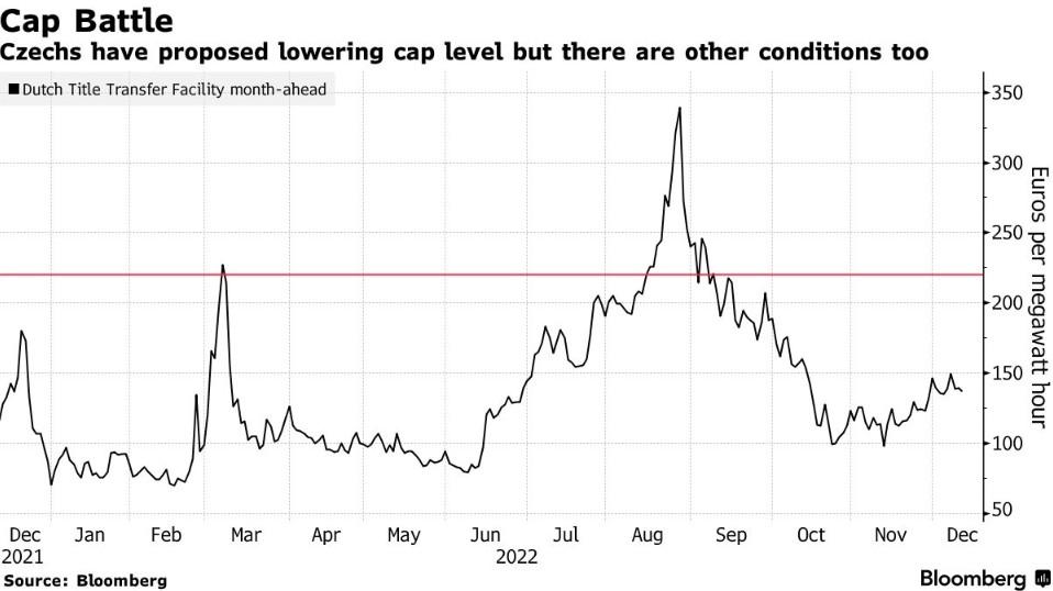 欧盟轮值主席国捷克政府已提议将这一上限降至220欧元,并将TTF价格与全球市场之间的差价降至35欧元。然而,这一水平对于支持大幅限价的支持者来说仍然太高,对于敦促采取更谨慎立场的欧盟成员国来说也太低。其他引起分歧的问题包括该措施的范围,以及使该机制失效的条件。